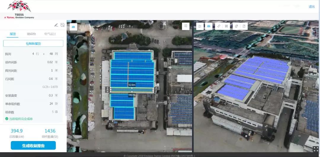 EntelligentTM泰思云的DAT模块,借助于无人机现勘和业内最领先的3D实景建模技术,DAT将数字化建模、自动化设计、智能化评估充分集成,一键完成设计方案,并自动生成工程量清单级别的物料计算和造价核算,将项目预算前置到项目评估阶段,真正实现分布式光伏资产形成阶段的数字化管理,大幅提升跨专业协同效率和投资决策准确性,全程降本增效。