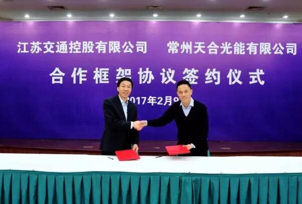2月9日,天合光能有限公司(以下简称“天合光能”)与江苏交通控股有限公司(以下简称“江苏交通”)在南京签署“战略合作框架协议”,旨在充分利用各自企业在交通基建和光伏产业的独特资源以及领先技术,开展以“光伏+交通”为特色的深层次、多方位合作。