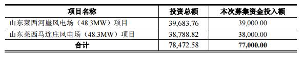 沃尔核材近日拟增发股票募集资金77000万元,用于风电项目投资。本次非公开发行股票的种类为境内上市人民币普通股(A 股),每股面值为人民币 1.00 元。募集资金及所投风电项目情况如下: