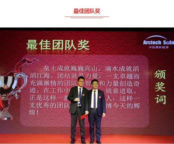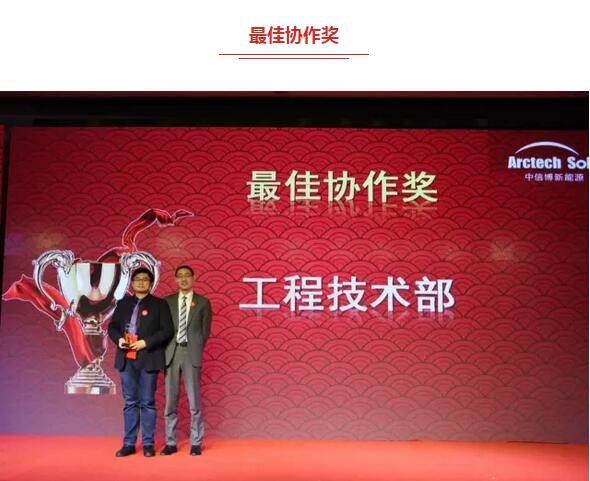 员工总结大会上,公司董事长蔡浩先生就公司2016年作出了总结性报告,蔡总表示,过去的一年对中信博来说具有历史里程碑的意义,公司整体由有限公司改制为股份公司,确立了在国内主板的上市战略,同时公司销售业绩继续保持30%的增长。蔡总强调,公司取得的巨大成绩离不开全体员工的同心协力、无私奉献,为此公司隆重举办颁奖典礼,特设各奖项包括:优秀员工奖、劳动模范奖、先进个人奖、技术标兵奖、创业成长奖、最佳服务奖、技术革新奖、最佳协作奖、金牌黄牛奖、团队奖及优秀供应商奖。