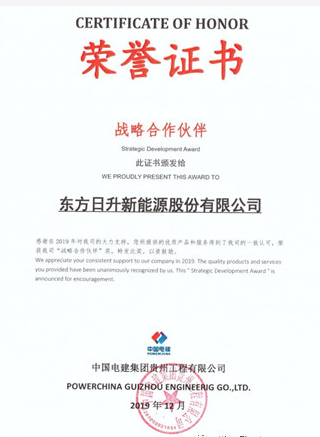 “强强联手”东方日升荣获中国电建集团贵州公司2019“战略合作伙伴”奖
