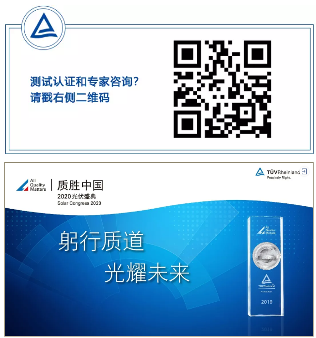 德国莱茵TÜV集团在光伏领域拥有35年以上的丰富经验,从90年代参与“千屋光伏屋顶”计划伊始,参与光伏领域新标准的研究和制定,并在科隆、普莱森顿、班加罗尔、米兰、上海与台湾拥有多家顶尖光伏测试中心及近三百位太阳能产业的专家,是全球太阳能光伏电站、组件、逆变器、零部件及储能等认证与测试服务的市场领导者。
