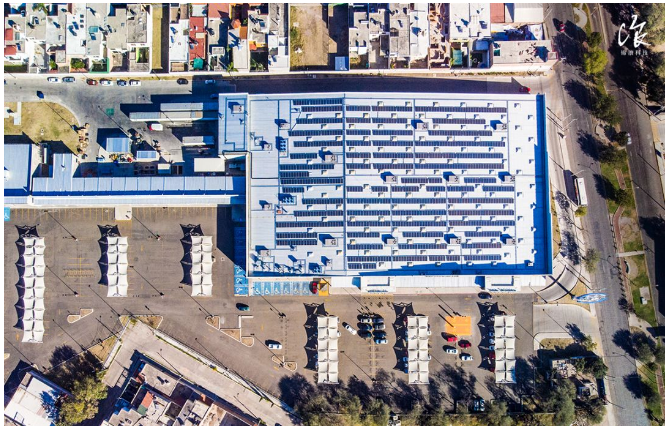 目前Solis-60K-HV逆变器已经在墨西哥沃尔玛商超得以应用,Solis在墨西哥八家沃尔玛店的屋顶安装光伏阵列(地点分别是:阿瓜斯卡连特斯,瓜纳华托州里昂,普埃布拉比诺, 瓜纳华托州萨拉曼卡)总装机容量约4MW。预估这些光伏安装项目年总发电量将达586 万kWh,每个光伏电站完全满足各分店白天的电力需求。