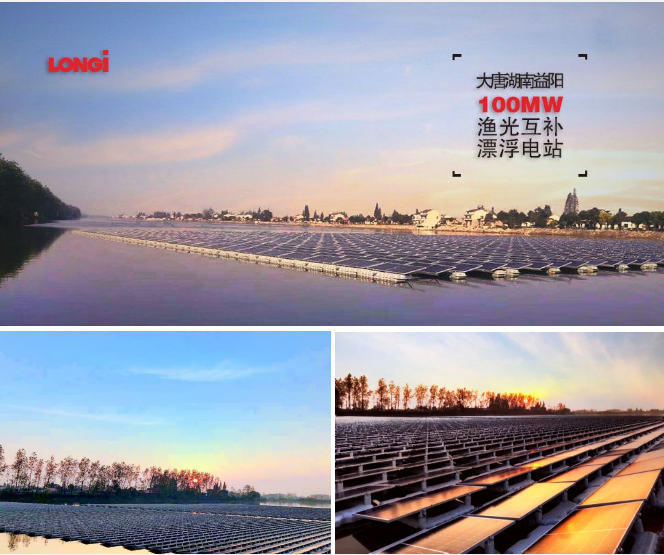 在大唐益阳100MW漂浮电站中采用了隆基应用M6硅片的Hi-MO 4组件,与阳光电源的浮箱式浮体匹配,可显著摊薄以浮箱为主的BOS成本;另一方面,隆基高效单晶PERC组件所具备的低衰减性能及优异的LeTID表现,能够很好地满足水面等多种应用条件的技术标准,在实际运行环境中具备更高效率,为项目的长期稳定发电提供了可靠保障。