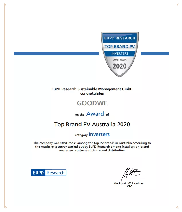 实力彰显!固德威四年蝉联澳大利亚、荷兰EUPD“光伏顶级品牌”奖