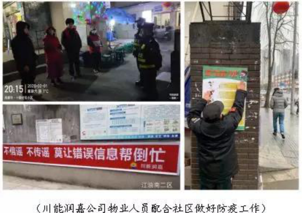 1月21日起,积极配合成都、青白江、宜宾、攀枝花、等政府主管部门、行业协会做好疫情防控工作,地毯式入户排查登记、公共区域病毒消杀、严查严控人员车辆进出等,为在川、在蓉国企家属区各小区疫情防控主阵地,构筑起共213个小区约13万户的家庭安全屏障。