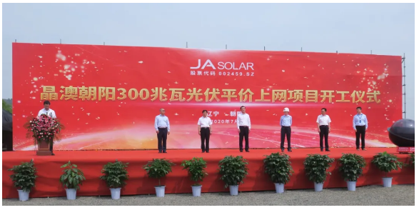 7月9日,晶澳首个大型地面平价电站项目——朝阳300兆瓦光伏平价上网项目在辽宁省朝阳县隆重举行开工仪式,朝阳市委副书记、市长谢卫东,朝阳县委书记李贵平,靳保芳董事长等出席仪式,朝阳县长刘力东主持仪式。