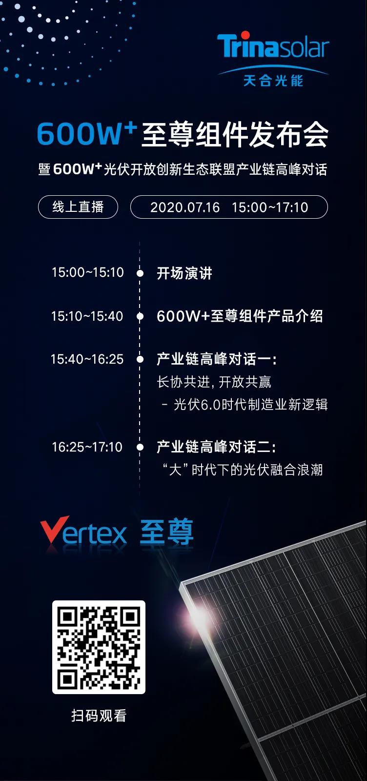 实现一款好的组件产品,需要经过产业链上各个环节以技术创新驱动,发挥各自在产业中的优势。过去十余年间产业链之间的相互协作,让中国光伏建立起了无可比拟的竞争优势,随着技术进步、产业升级,这种协作变得越来越紧密。7月16日,600W+至尊组件发布会暨600W+创新生态联盟产业链高峰对话,天合光能携手特邀嘉宾为您逐一解答。