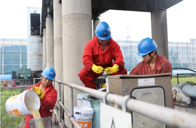 “迎峰度夏”期间,为确保公司设备稳定运行,港口公司操作部机务二班员工正在进行皮带机液压张紧油箱换油工作。