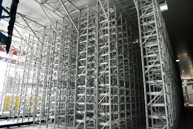 在现场,建设中的电池货架顶天立地,似士兵般挺立。这里智能物流设备的应用,将大幅提升仓储效率,降低人工成本,提升南通工厂智能化、数字化整体建设水平。