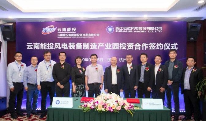 2020年9月25日,浙江运达风电股份有限公司(下称“运达股份”)与云南能投新能源投资开发有限公司(下称“云南能投新能源”)在杭州签署风电装备制造产业园投资合作协议,这标志着运达股份与云南能投新能源在前期签署战略合作协议的基础上,双方合作关系迈上了新台阶。云南省能源投资集团有限公司总裁、副董事长谢一华,云南能投新能源公司董事长李春明,浙江省机电集团有限公司总经理兼运达股份董事长杨震宇,运达股份党委书记、总经理高玲等有关领导共同出席了本次签约仪式。