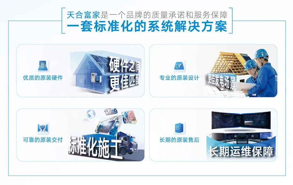 天合富家是天合光能旗下原装户用光伏系统品牌,自2016年成立之初,就在行业内首创“原装”理念并制定原装4T标准,即“优质的原装硬件、专业的原装设计、可靠的原装交付、完善的原装售后”。天合富家始终以用户利益为导向,围绕品牌、产品、服务三大核心战略建立了以产品研发、市场销售、安装售后、智能运维为一体的完整体系,构建了数字化、全渠道的生态网络;通过涵盖选材、生产、检测、仓储、运输、设计、安装、验收、并网、验收十个环节的全过程的质量闭环管理体系,切实保障用户和业主的合法权益。