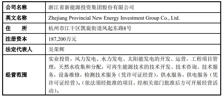 浙江省新能源投资集团股份有限公司成立于2002年,注册资本金18.72亿元,总资产超170亿元,是由浙江省能源集团有限公司控股的专业从事水电(含抽水蓄能电站)、水务、风电、太阳能发电和其它可再生能源投资、开发、运营管理的综合型能源企业。