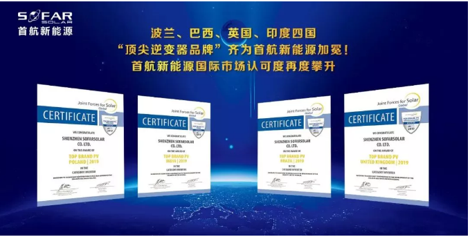 据国际权威光伏评测机构EUPD公布数据,首航新能源在波兰、巴西、英国、荷兰市场份额居国内企业前列,被评为“TOP Brand PV inverter”,此次获评“中国十大分布式光伏逆变器品牌”殊荣,更是对首航新能源市场及品牌的认可。