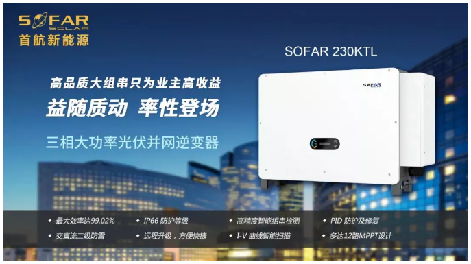 作为首航新能源2020年即将上市的一款王者机型——SOFAR230KTL-HV(1500V)光伏逆变器此次展会也备受关注,不仅拥有更高的转化效率,更高的防护等级,宽宽电压范围等,而且可以更好的适应大型地面电站、山丘电站、水面电站等复杂安装环境。