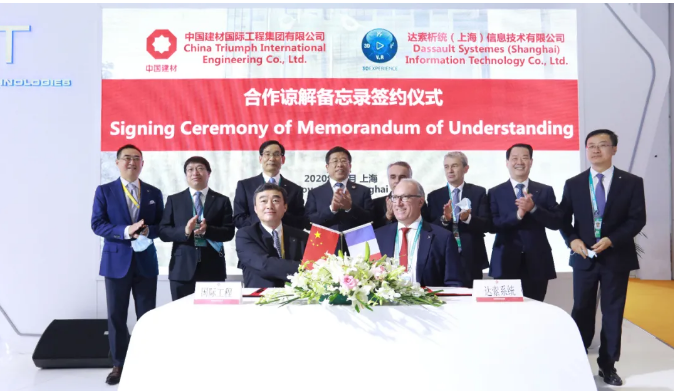 进博会首日,任洪斌视察了中国建材集团展台,并见证了中国建材工程与法国达索集团签署合作备忘录。