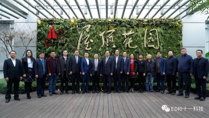 十一科技董事长赵振元,副董事长孙鸿伟、何平会在屋顶花园亲切合影