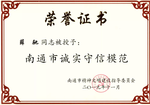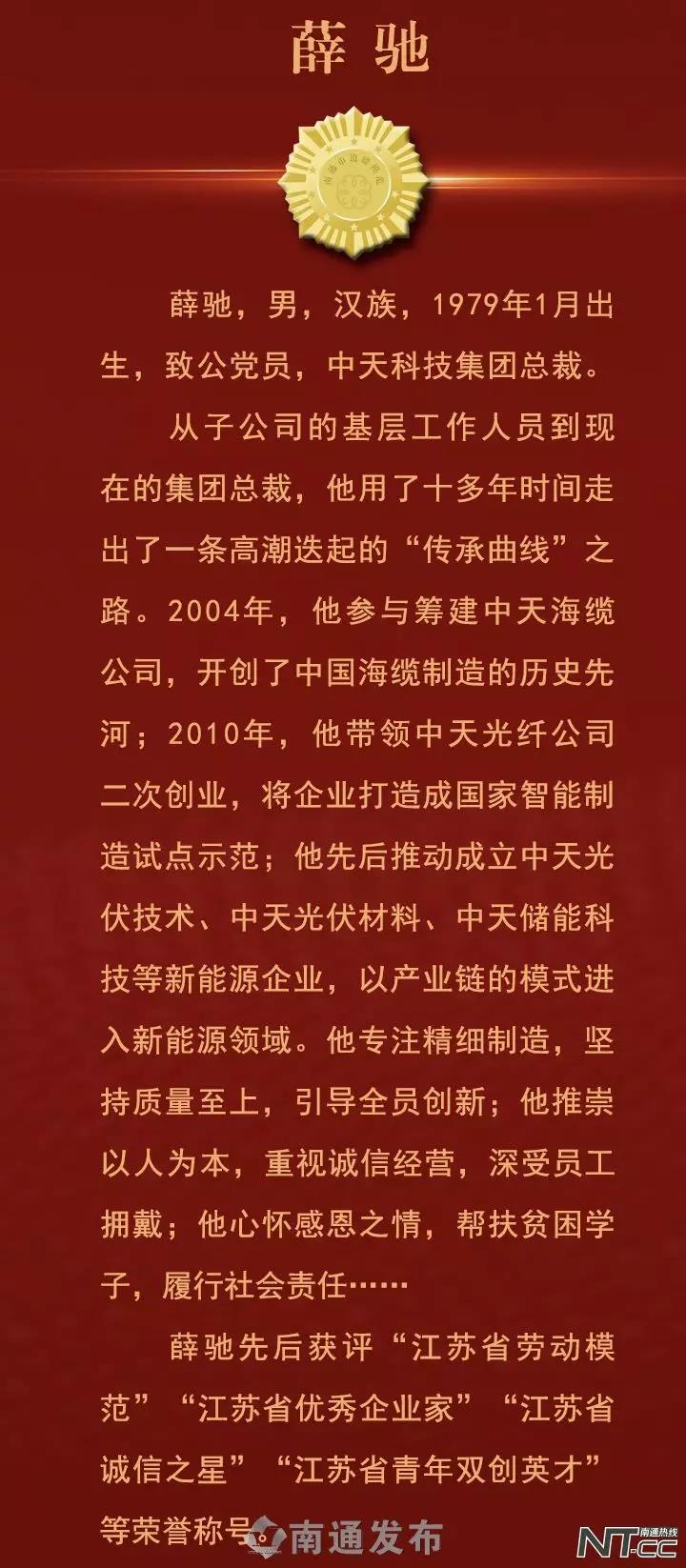 一个榜样竖起一面旗帜,一群模范激荡满城春风。日前,在“德润江海”首届南通市道德模范颁奖典礼上,中天科技集团总裁薛驰被授予南通市首届“诚实守信”模范。