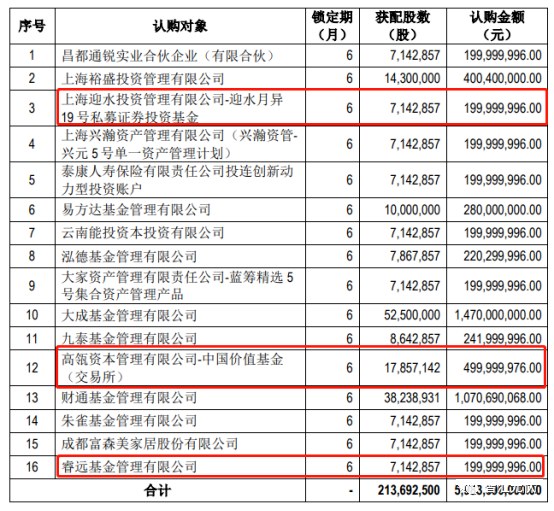 而12月9日通威股份公告宣布:近60亿定增大单的配售结果,高瓴资本旗下的中国价值基金认购了约5亿元。