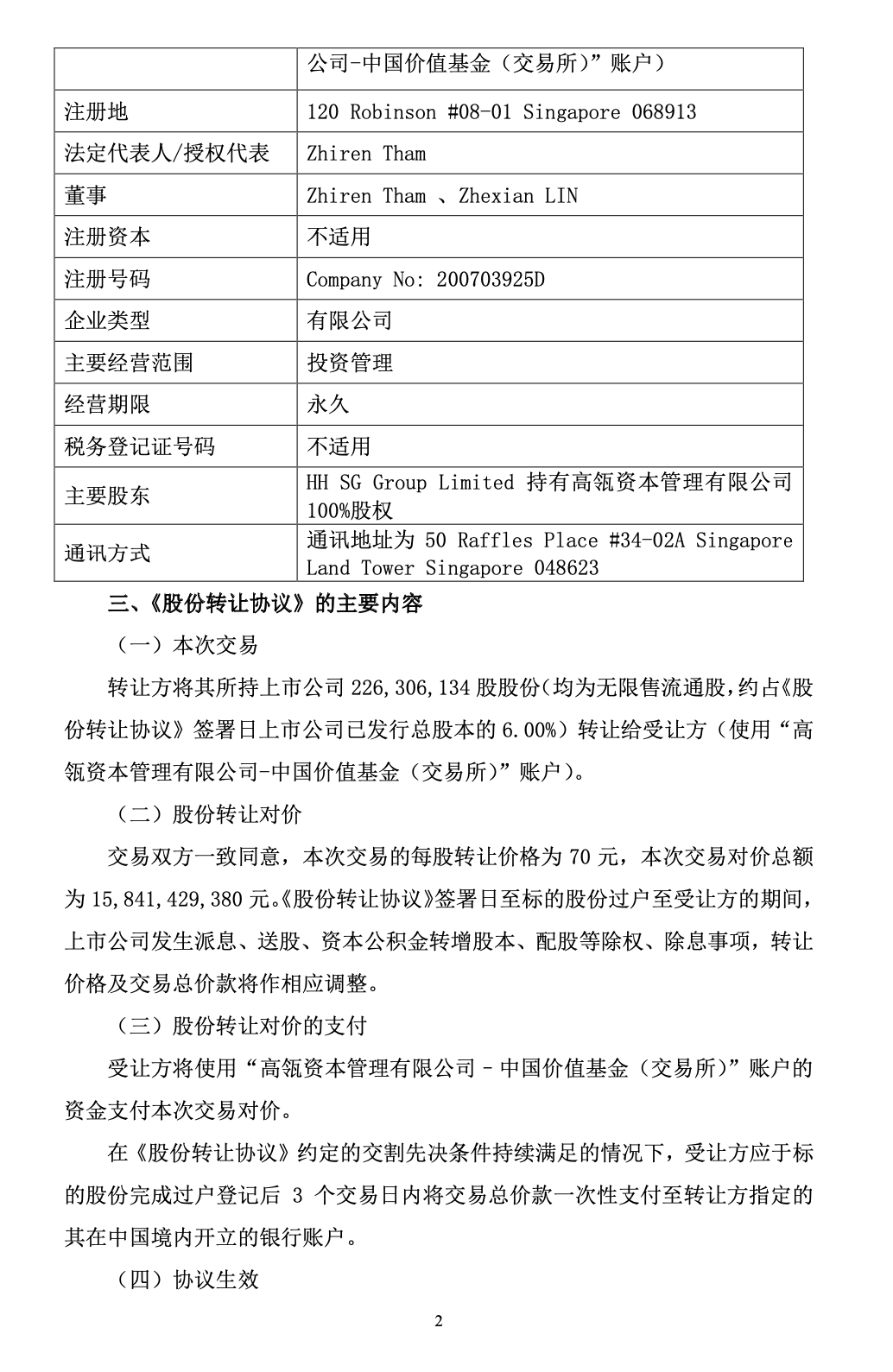 交易双方一致同意,李春安将6%的股份转让给高瓴资本,本次交易的每股转让价格为 70 元/股,本次交易对价总额 为 15,841,429,380 元,即158.4亿元!高瓴资本成为隆基股份的第二大单一股东!