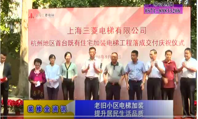 上海三菱在浙江地区首台加装电梯交付使用,暨第五家(杭州)一站式加装电梯服务中心挂牌开业。