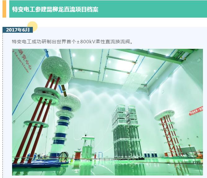 12月27日,由南方电网公司投资建设的国家西电东送重点工程乌东德电站送电广东广西特高压多端柔性直流示范工程(简称昆柳龙直流工程)正式启动投产送电。特变电工为该工程发送端昆北换流站提供14台高端换流变、为接收端广东龙门站提供24台±800kV干式桥臂电抗器、为接收端广西柳北换流站提供2套±800kV柔性直流换流阀。