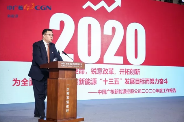 中国广核集团有限公司(以下简称“集团公司”)党委常委、副总经理施兵,集团公司总经理助理、中广核新能源董事长陈遂,集团公司相关部门负责人,中广核新能源董事,党委书记、副总经理张志武,高管团队成员等出席会议。中广核新能源执行董事、总经理李亦伦作公司2020年工作报告。中广核新能源党委委员、副总经理李靖主持会议。