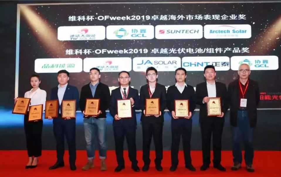 2019年11月21日,由OFweek维科网主办的“维科杯·OFweek 2019中国太阳能光伏行业年度评选”活动在深圳圆满落幕。晶澳凭借九主栅半片单晶PERC组件荣获“2019卓越光伏电池/组件产品奖”。