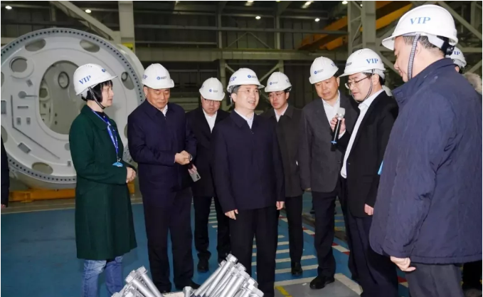 周江勇一行深入制造中心生产车间,对风电机组制造装备工艺、重要部件采购、风电产业链协同配套等情况进行了调研。在重点实验室,周江勇详细了解实验室研究方向及科研工作开展情况。调研期间,浙江省机电集团有限公司总经理兼运达股份董事长杨震宇向周江勇书记介绍了运达股份的发展历程,对省委、市委领导对公司给予的关注和支持表示感谢,并就公司战略定位、技术创新成果、人才引进与培养、行业发展形势等情况做了重点汇报。