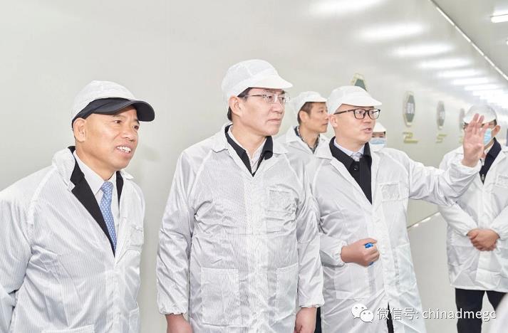 1月13日上午,金华市委书记陈龙带队走访横店东磁太阳能电池片六厂、七厂,考察5G未来工厂,调研新能源产业情况。东阳市委书记傅显明,东阳市委常委、横店镇委书记郭锦明,横店东磁董事长何时金、总经理任海亮等陪同调研。