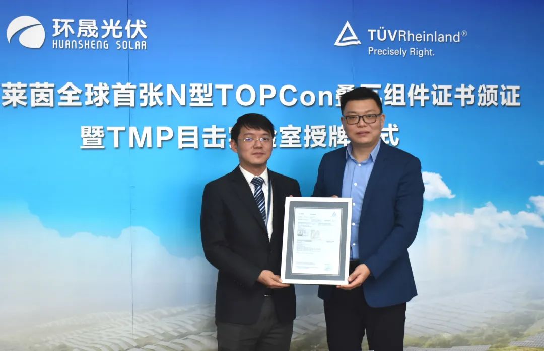 双喜临门!环晟光伏获TÜV莱茵全球首张N型TOPCon叠瓦组件新标证书及TÜV莱茵认可实验室资质