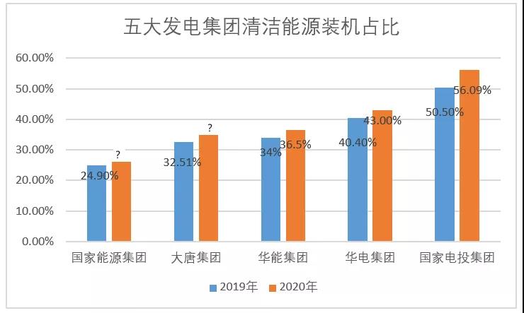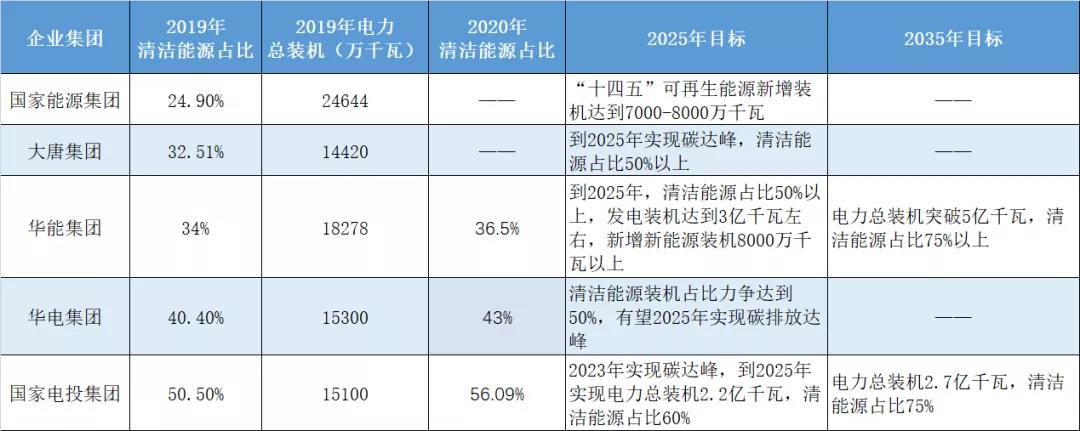 截至目前,五大发电集团中,只有国家能源集团未公开2025年清洁能源占比目标,只给出了装机量。