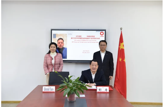 1月29日,中国工程院院士、中国建材集团有限公司总工程师、凯盛科技集团有限公司董事长彭寿与金顶资本控股集团主席丹尼尔先生通过视频连线,签署了总金额超亿欧元的波兰地面光伏电站二期200兆瓦总承包合同。这是继2020年2月凯盛科技成功拿下超亿美元新能源国际大单后,两家企业的再度联手,进一步表明凯盛科技新能源业务综合实力达到国际一流水平。