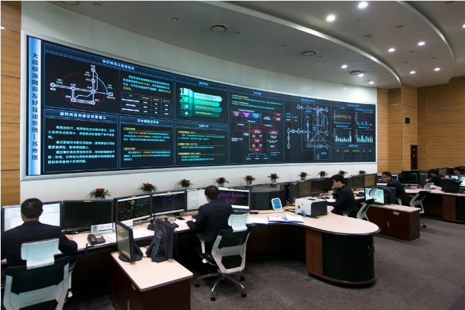 ▲国网江苏电力员工通过源网荷储协调控制系统优化能源配置