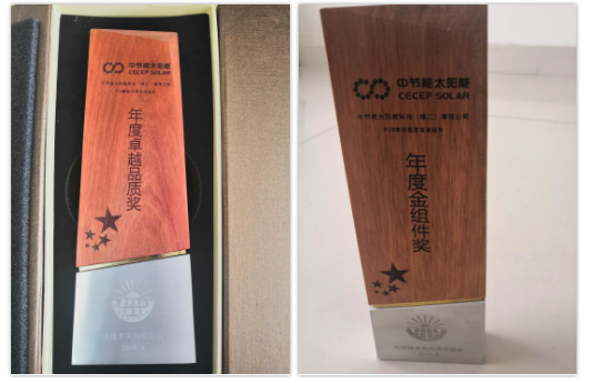 公司荣获——PVB高效双面双玻组件年度卓越品质奖/年度金组件奖