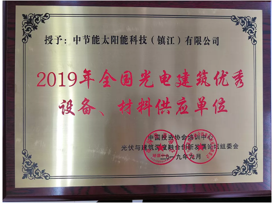 公司荣获——2019年全国光电建筑优秀设备、材料供应单位