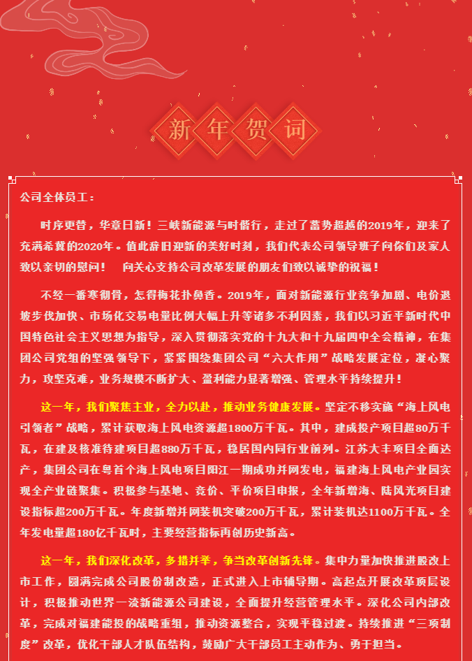 三峡新能源2020年新年贺词:只争朝夕,不负韶华