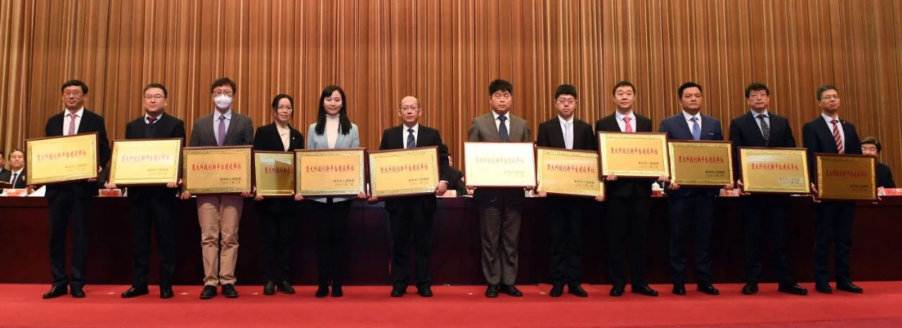 配图:段顺伟(右三)代表天合光能接受“重大科技创新平台建设单位”授牌
