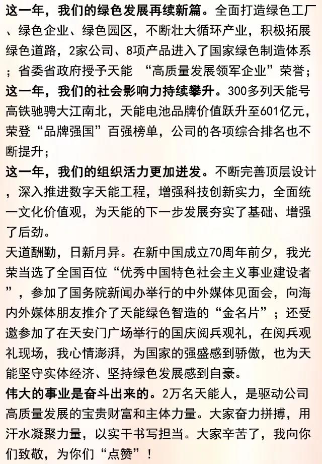 天能集团张天任2020新年贺词:同心同行,共同绘就天能集团壮美画卷