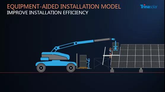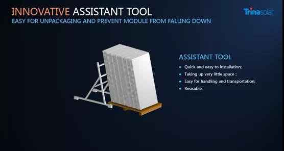 此外,在后运输阶段即拆包安装阶段,天合光能提供了辅助工具作为标配,简单易用,可以作为箱体的支撑,确保整个拆箱过程的安全性。经大量的实证,670W组件可以实现安装成本下降5-7%。目前,天合光能已经着手开发自动安装,由机器辅助自动完成搬运,人工只需拧螺丝紧固组件即可,大幅提升安装效率,人力成本大幅下降,度电成本也将随之下降。