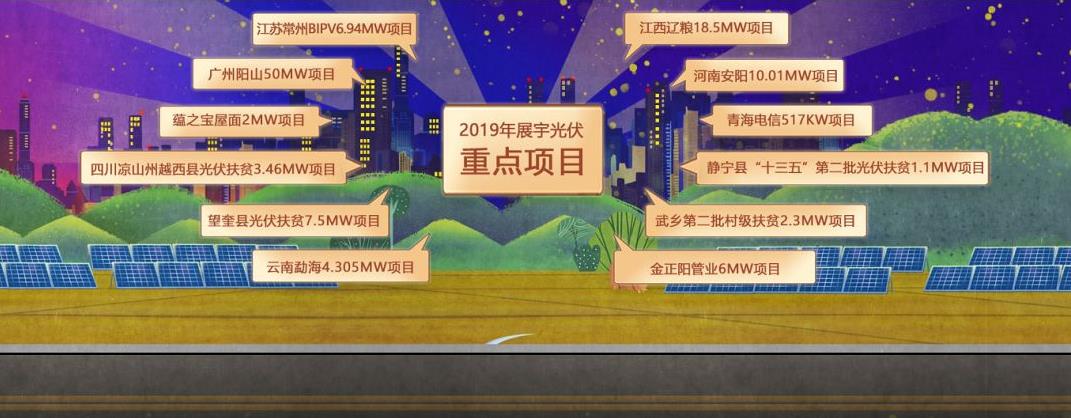 2019年是整个中国光伏产业高速腾飞的一年,在这其中我们展宇也拿下了一些项目获得了一些殊荣,在此我们要向一年来对我们的付出和坚持予以肯定和认可的各地政府、行业同仁、企事业单位和消费者们道一声谢谢!感谢你们一年来的关注和陪伴,我们会将不断创新之路继续下去。