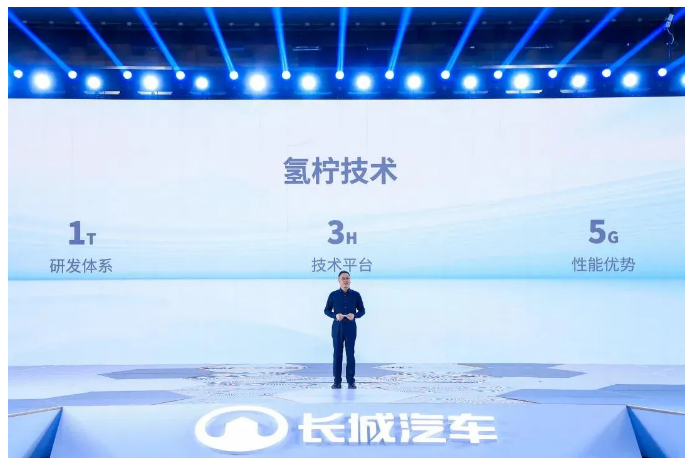 在宣布氢能战略的同时,长城汽车还发布了“氢柠技术”,这是一套涵盖了氢燃料电池系统、车载储氢系统及核心关键部件的零碳交通解决方案。