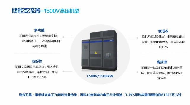 在国家提出的碳达峰、碳中和政策背景下,针对构建以新能源为主体的新型电力系统,特变电工新能源带来了“新型电力系统的灵活性资源配置-储能在新能源大基地建设中的作用”的主题分享。特变电工新能源1500V/1500kW储能变流器产品,依托柔性交直流输电技术及储能技术,采用“双高”结合的方式,利用高比例清洁能源和高比例电力电子装置,凭借在光伏逆变器应用中的领先技术水平,采用直流侧1500V接入,最大限度的降低了系统初始投资,并在风光储相结合的应用中予以实施,完美化解决电力系统存在的电网运行难度增大、可控性灵活性差、智能化程度较低等问题。
