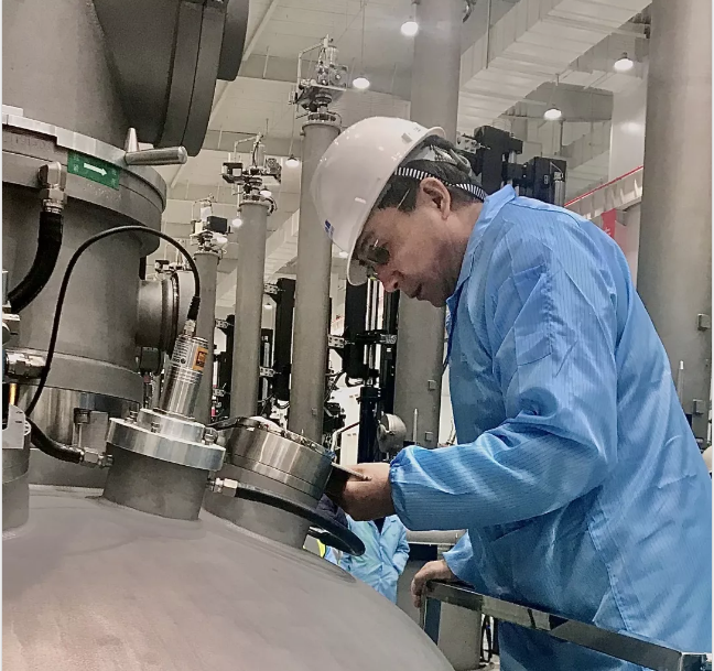 12月27日,中环集团总经理、中环股份董事长、总经理沈浩平到内蒙古中环产业园指导工作,深入可再生能源太阳能电池用单晶硅材料产业化工程五期项目现场和生产一线。近日,五期项目连续复投产出首批M12单晶硅棒,在查看了项目建设进度和生产情况后,沈浩平董事长表示“比预想中要好”。同时要求光伏晶体体系、内蒙古工程建设指挥部经营班子继续加快项目建设进度、迅速投产达产,以高品质的产品与全产业链客户共同创新,改变可再生能源的行业格局,推动光伏产业的平价上网进程。