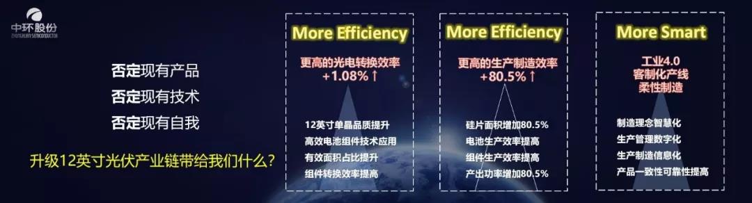 2019年8月16日,中环股份正式推出“夸父”系列M12产品。升级的M12光伏产业链将为整个光伏行业带来三个“More”: