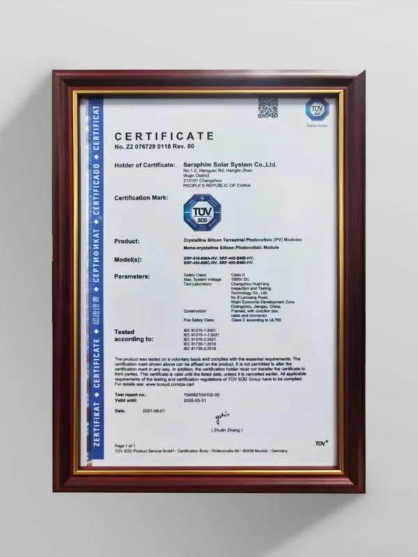 “独一无二”!赛拉弗荣获TÜV SÜD全球首家2021版IEC 61215系列标准证书