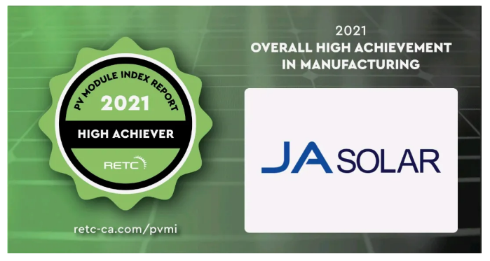 在美国权威检测机构可再生能源试验中心(RETC)近期公布的《2021年光伏组件指数报告》(PVMI)中,晶澳科技凭借其组件在品质、可靠性和发电性能三个方面严格测试中的优异表现,荣获“全面表现最优”(Overall High Achievers)荣誉。这是RETC 2019年推出PVMI报告以来,晶澳连续第二次获此认可。