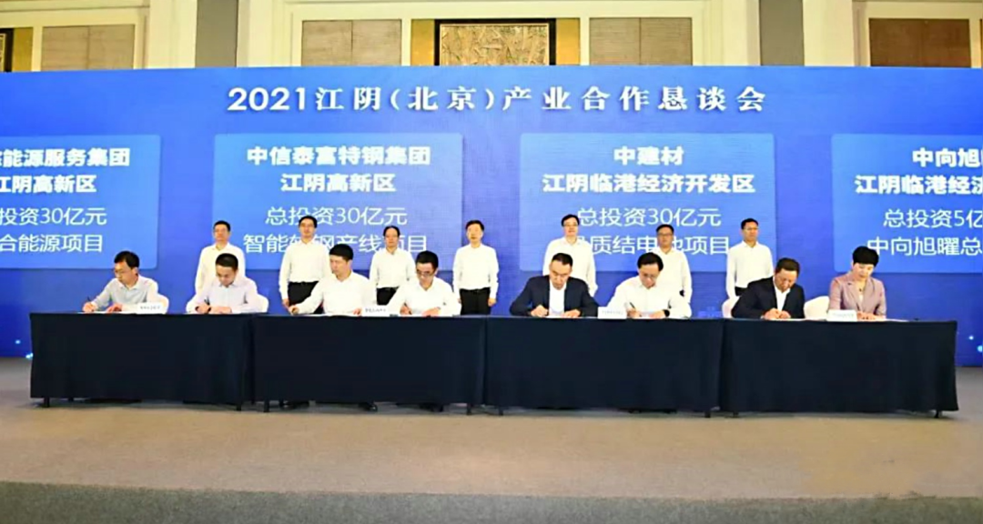 近日,2021江阴(北京)产业合作恳谈会在京顺利举行。中国工程院院士、中国建材集团有限公司总工程师、凯盛科技集团有限公司党委书记、董事长彭寿,中信集团原副总经理、中信泰富原董事长张极井等来自央企的嘉宾客商以及部分在京江阴籍知名人士出席恳谈会。无锡市委常委、江阴市委书记许峰,江阴市委常委、临港开发区管委会主任计军等领导参加恳谈会。
