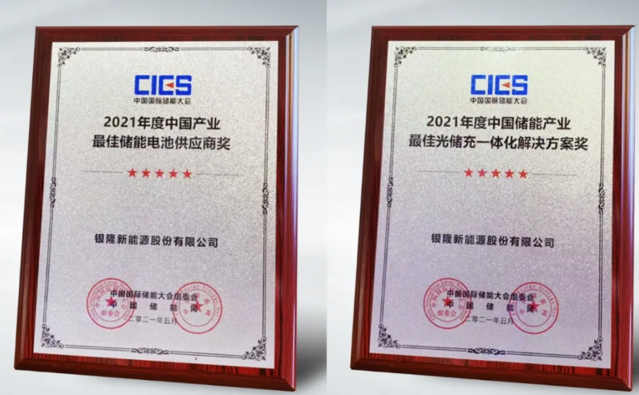 2021年,凭借性能优异、安全可靠的钛酸锂产品,银隆新能源斩获“中国产业最佳储能电池供应商”、“中国储能产业最佳光储充一体化解决方案”双项大奖。