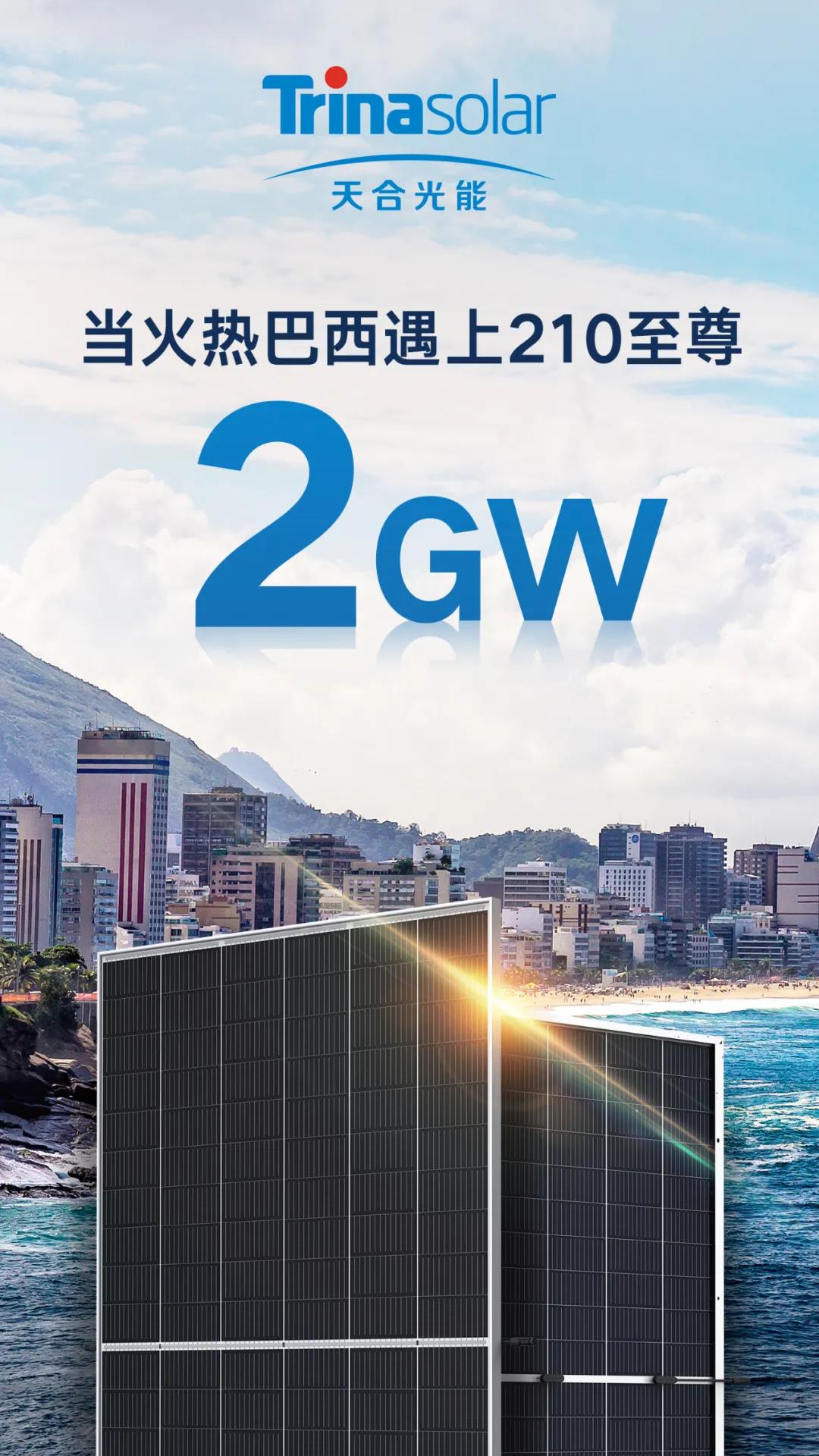 有阳光的地方,就有天合光能!210的步履行至巴西、席卷拉美,2GW是美好未来的开始,伴随而起的一座座光伏电站、一个个光伏屋顶,彰显出构建无碳新能源世界的“天合力量”!